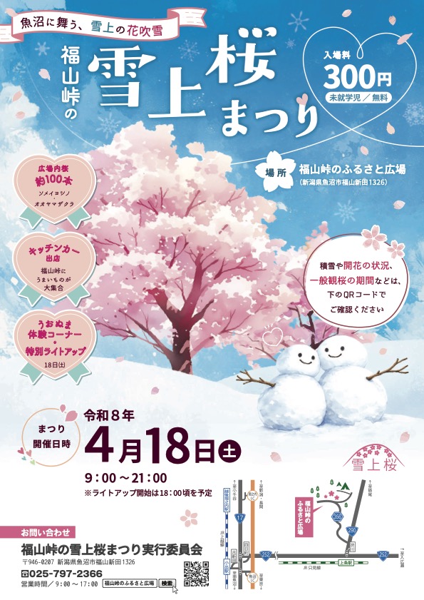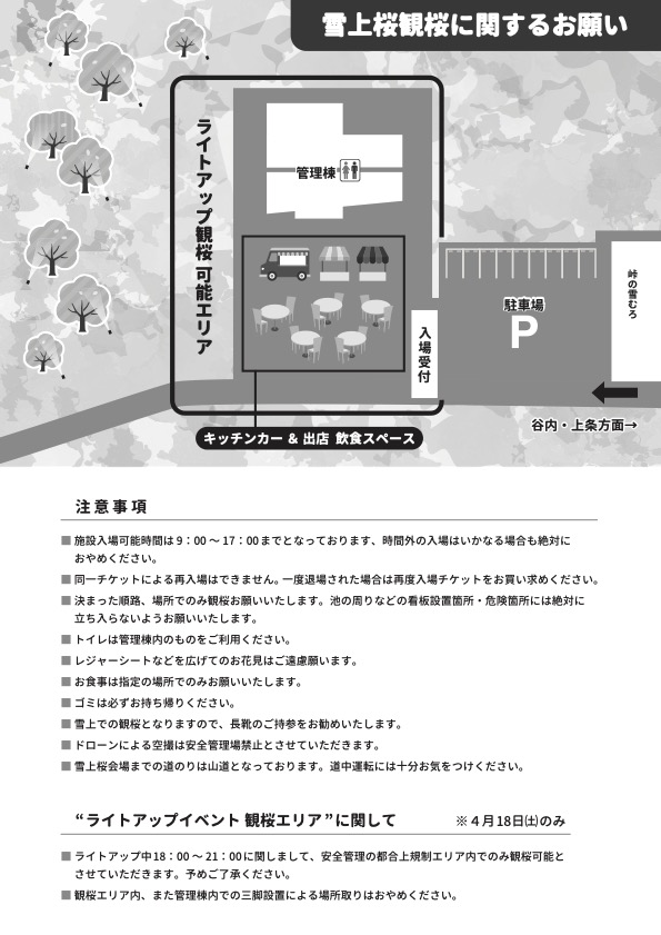 雪上桜の開花状況や積雪状況、イベントの詳細に関しましては随時HPにて発信して参ります。